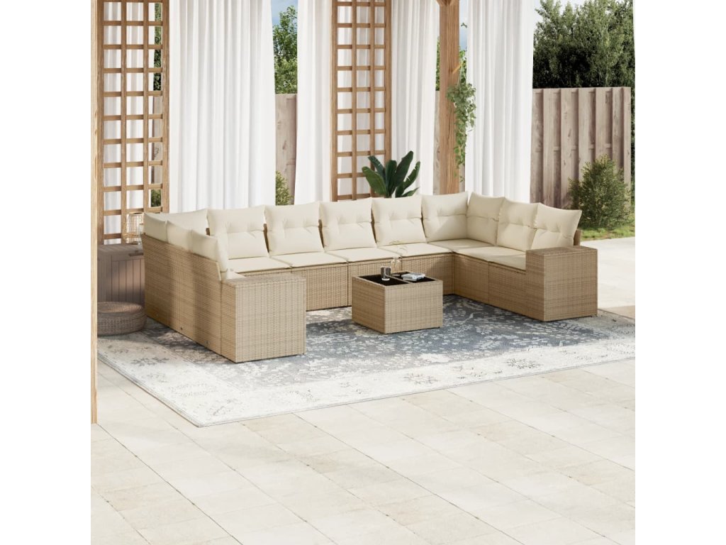11dílný zahradní sedací souprava s poduškami béžový polyratan 3223077