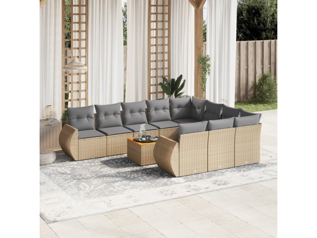 11dílný zahradní sedací souprava s poduškami béžový polyratan 3225184