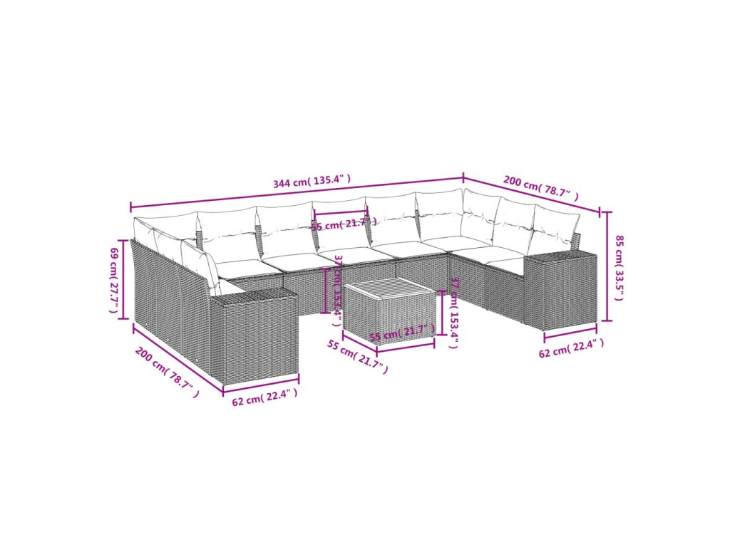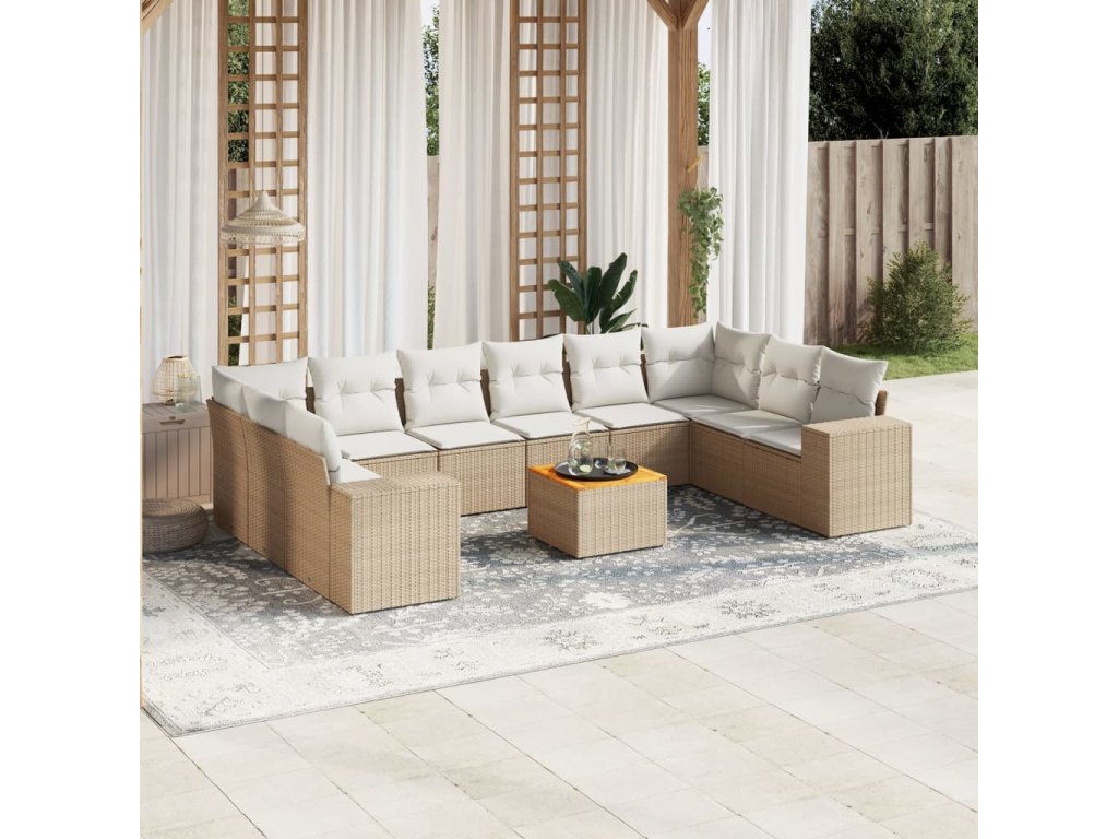 11dílný zahradní sedací souprava s poduškami béžový polyratan 3225617