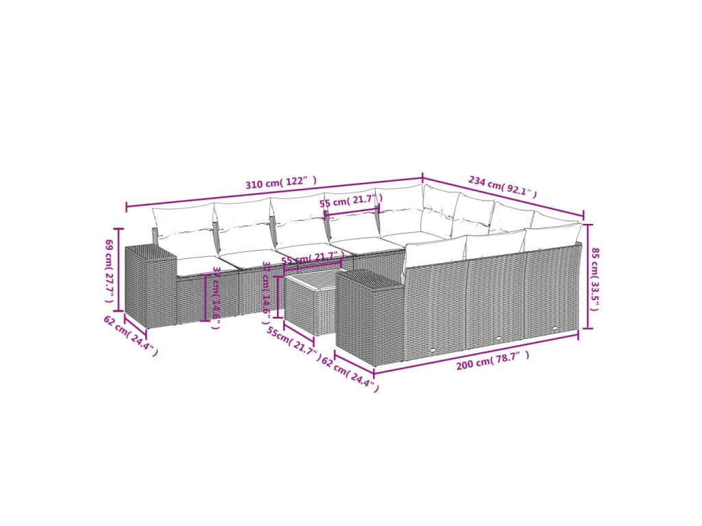 11dílný zahradní sedací souprava s poduškami béžový polyratan 3225624