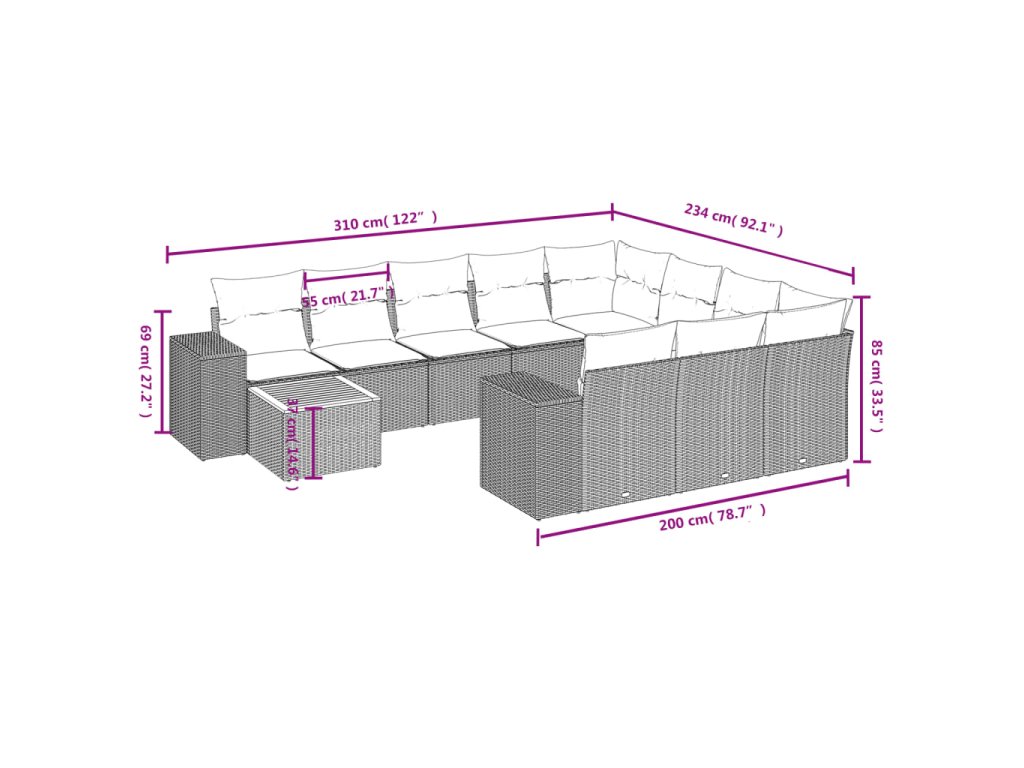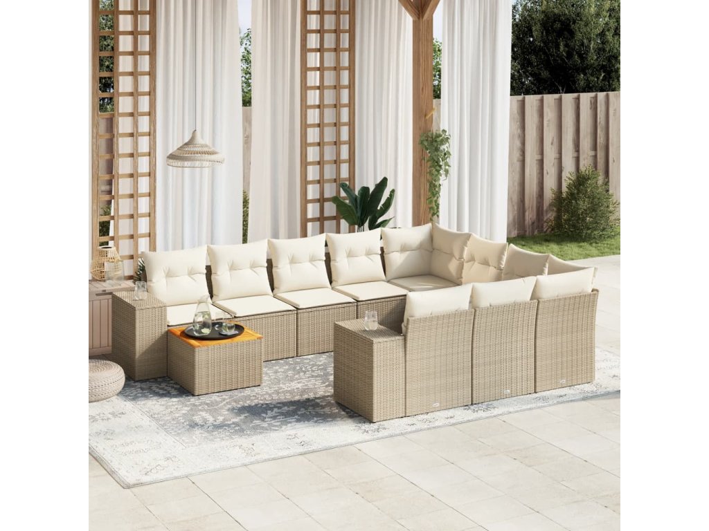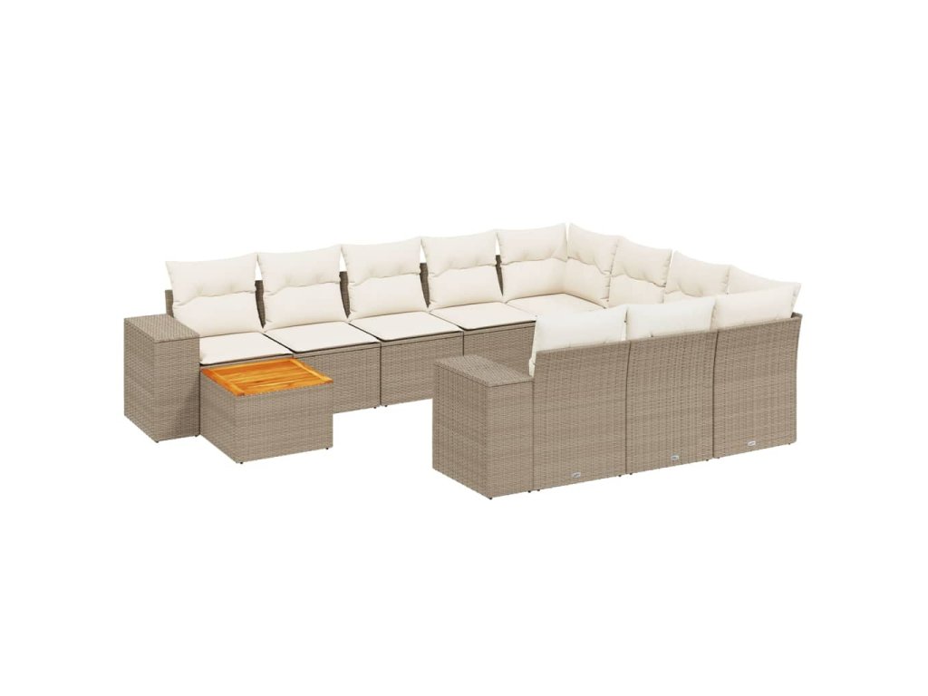 11dílný zahradní sedací souprava s poduškami béžový polyratan 3225631