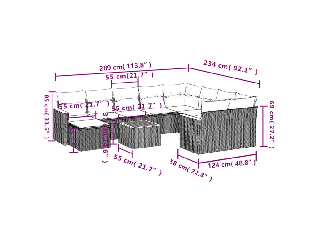 11dílný zahradní sedací souprava s poduškami béžový polyratan 3226562