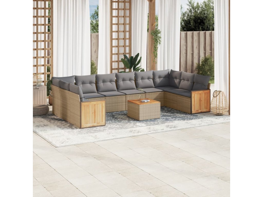 11dílný zahradní sedací souprava s poduškami béžový polyratan 3228012