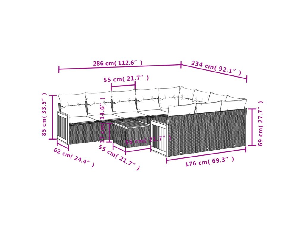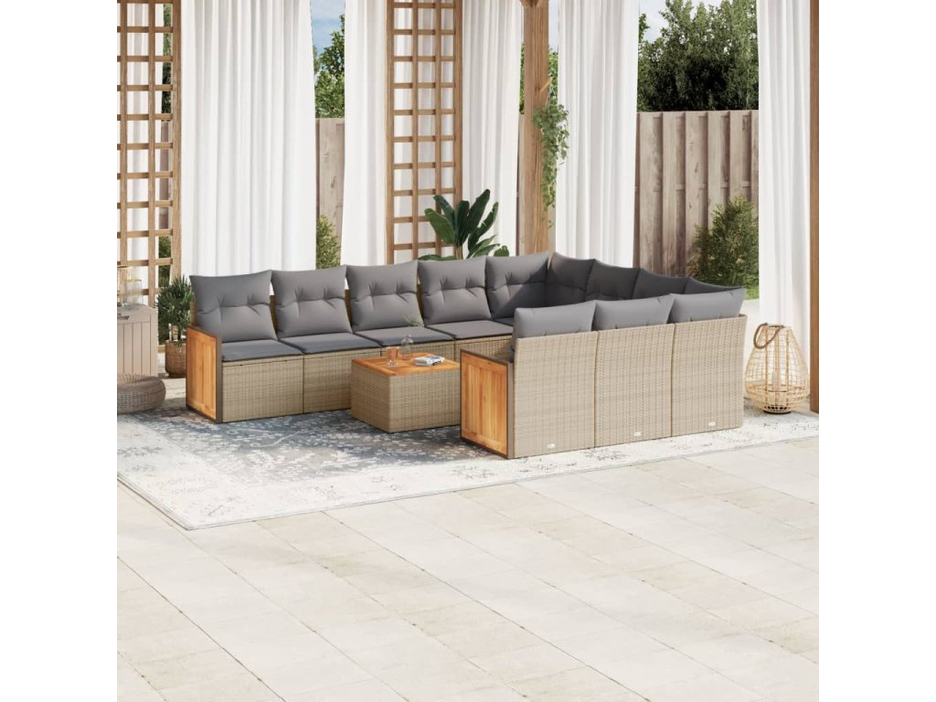 11dílný zahradní sedací souprava s poduškami béžový polyratan 3228026
