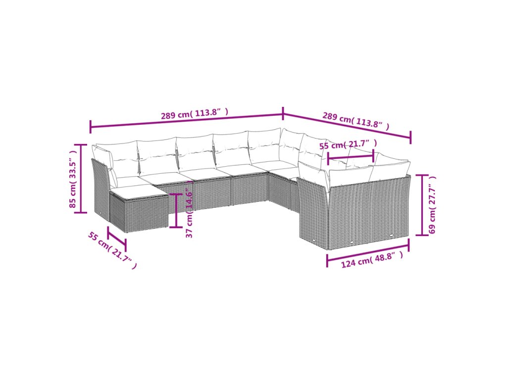 Tato zahradní sedací souprava je dokonalým doplňkem vaší zahrady, terasy nebo dvorku a poskytne vám pohodlné a příjemné místo, kde si můžete povídat s rodinou a přáteli nebo jen tak odpočívat a užívat si pobyt venku.