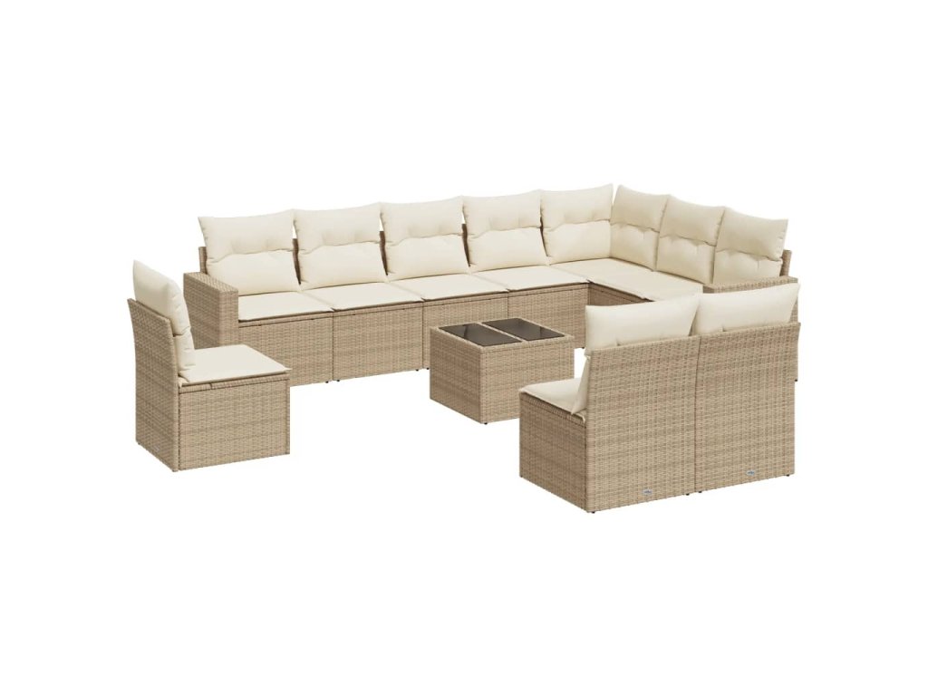 11dílný zahradní sedací souprava s poduškami béžový polyratan 3251455