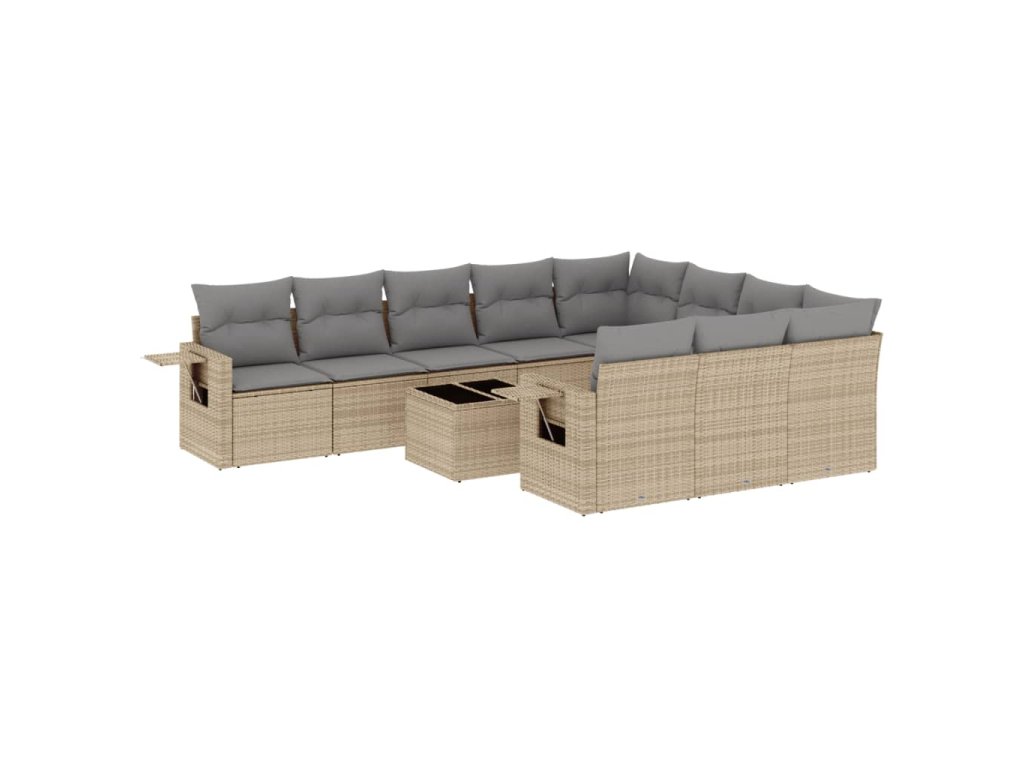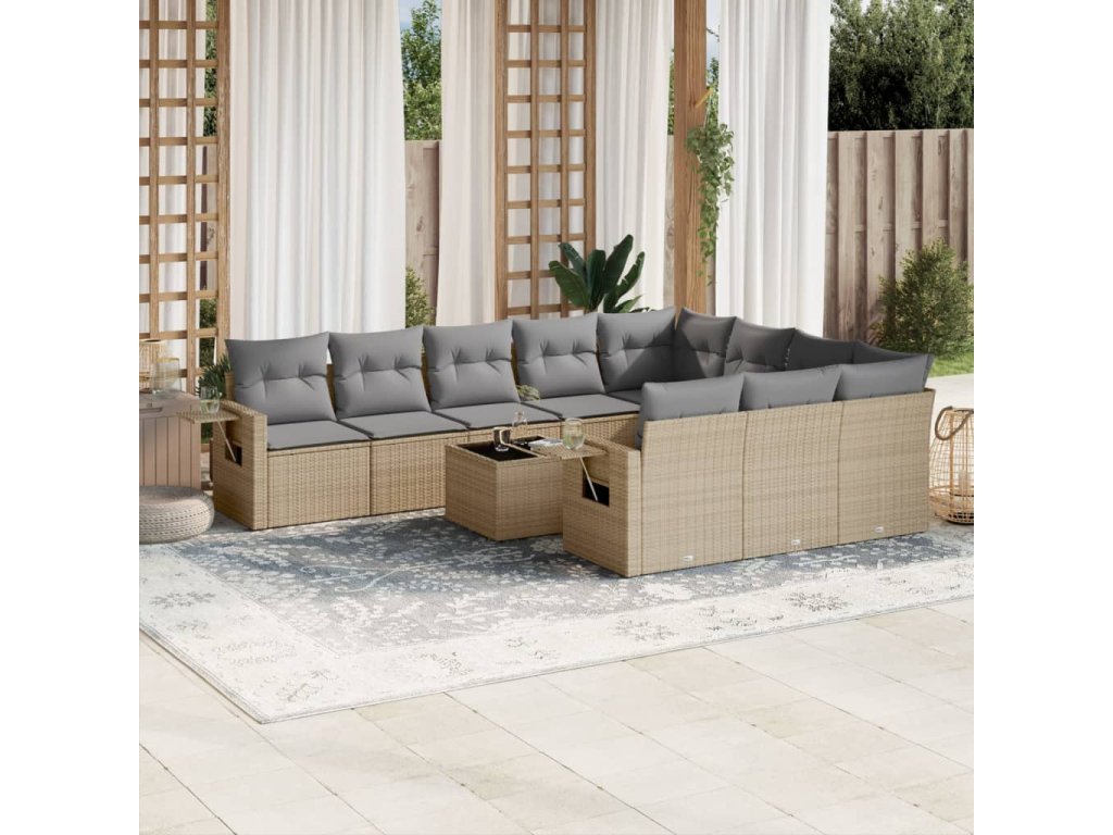 11dílný zahradní sedací souprava s poduškami béžový polyratan 3253036