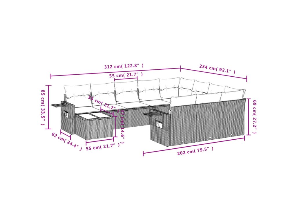 Tato zahradní sedací souprava je dokonalým doplňkem vaší zahrady, terasy nebo dvorku a poskytne vám pohodlné a příjemné místo, kde si můžete povídat s rodinou a přáteli nebo jen tak odpočívat a užívat si pobyt venku.