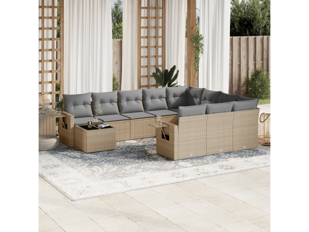 11dílný zahradní sedací souprava s poduškami béžový polyratan 3253066