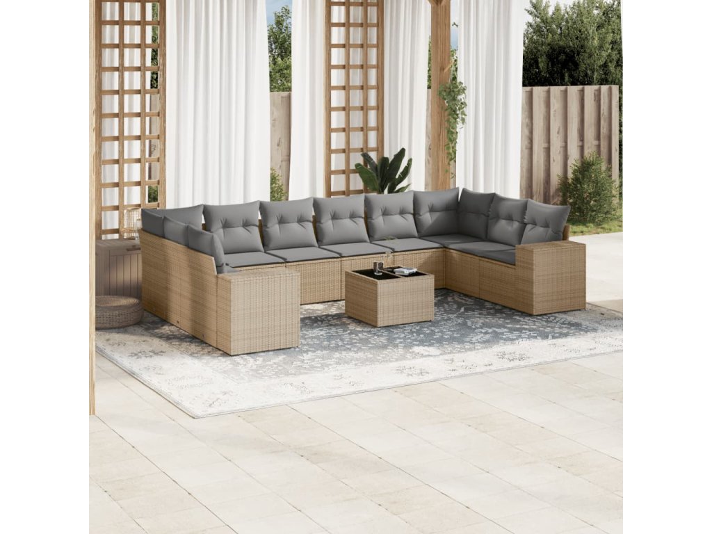 11dílný zahradní sedací souprava s poduškami béžový polyratan 3255416