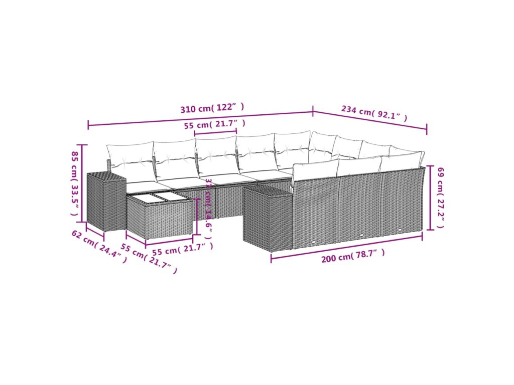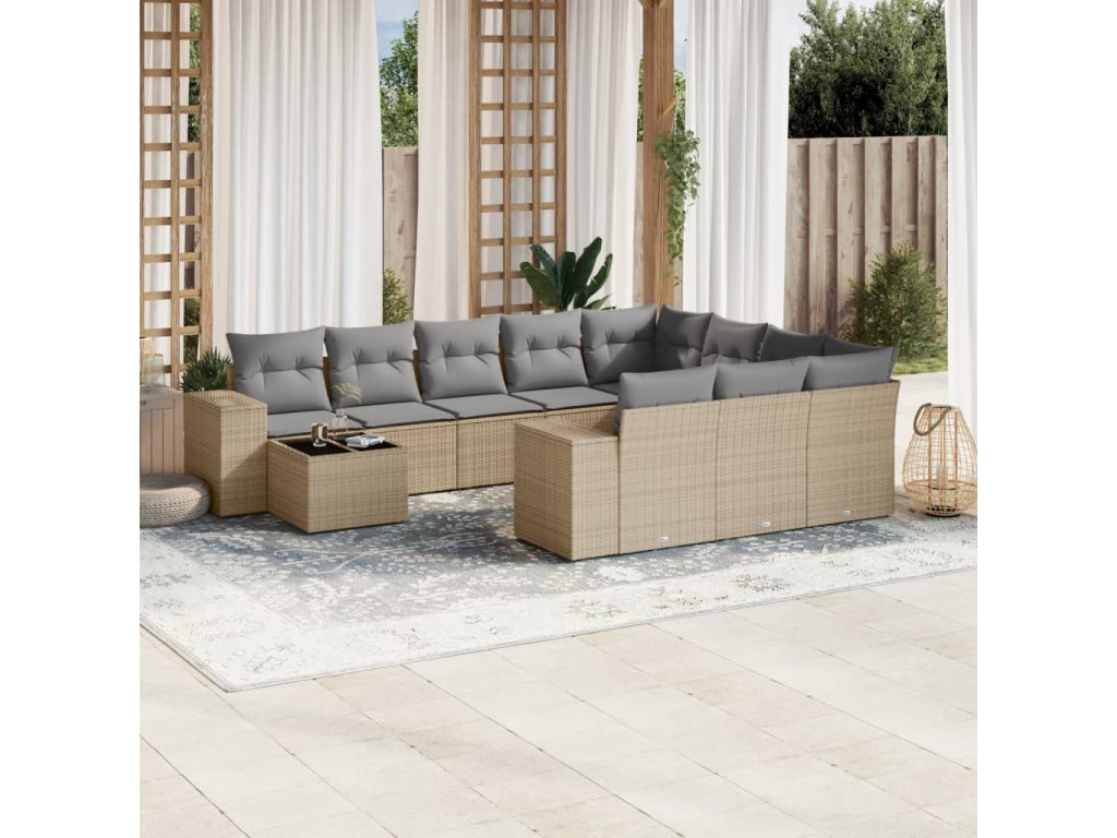 11dílný zahradní sedací souprava s poduškami béžový polyratan 3255466