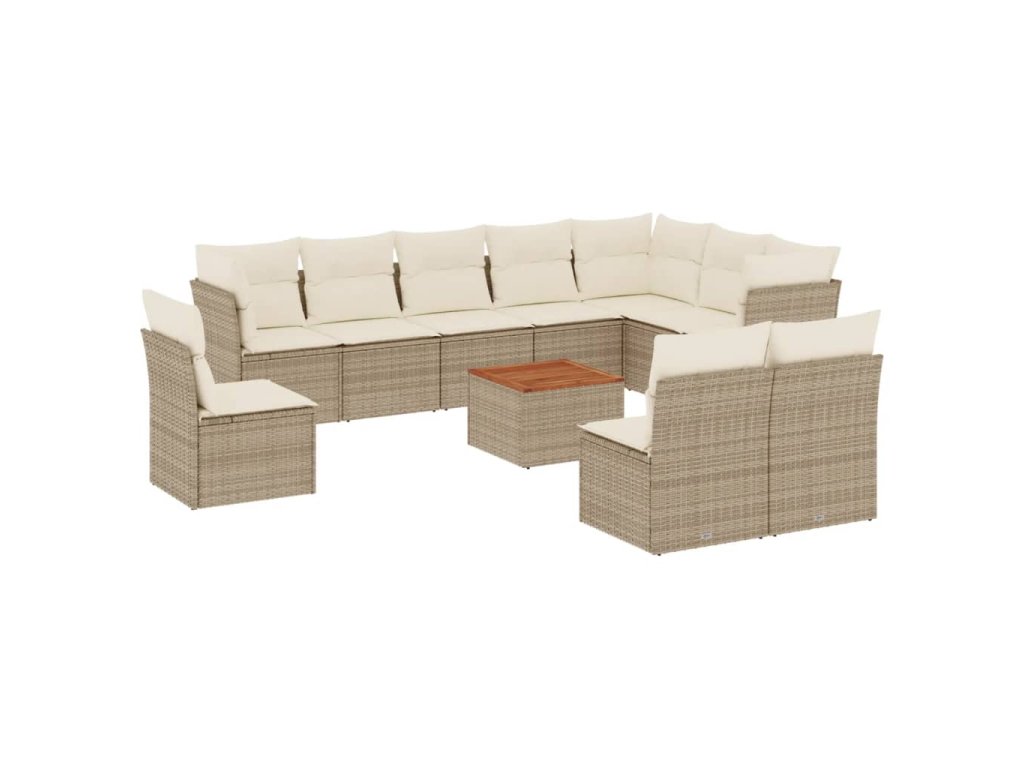 11dílný zahradní sedací souprava s poduškami béžový polyratan 3256030