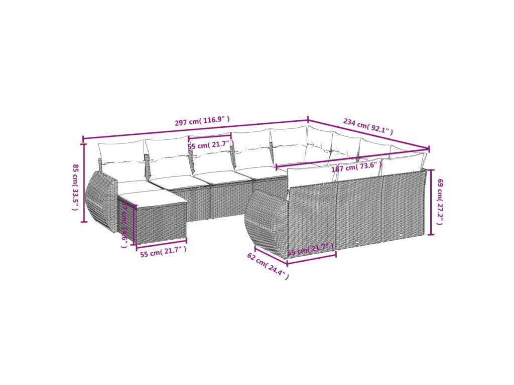 11dílný zahradní sedací souprava s poduškami béžový polyratan 3257522