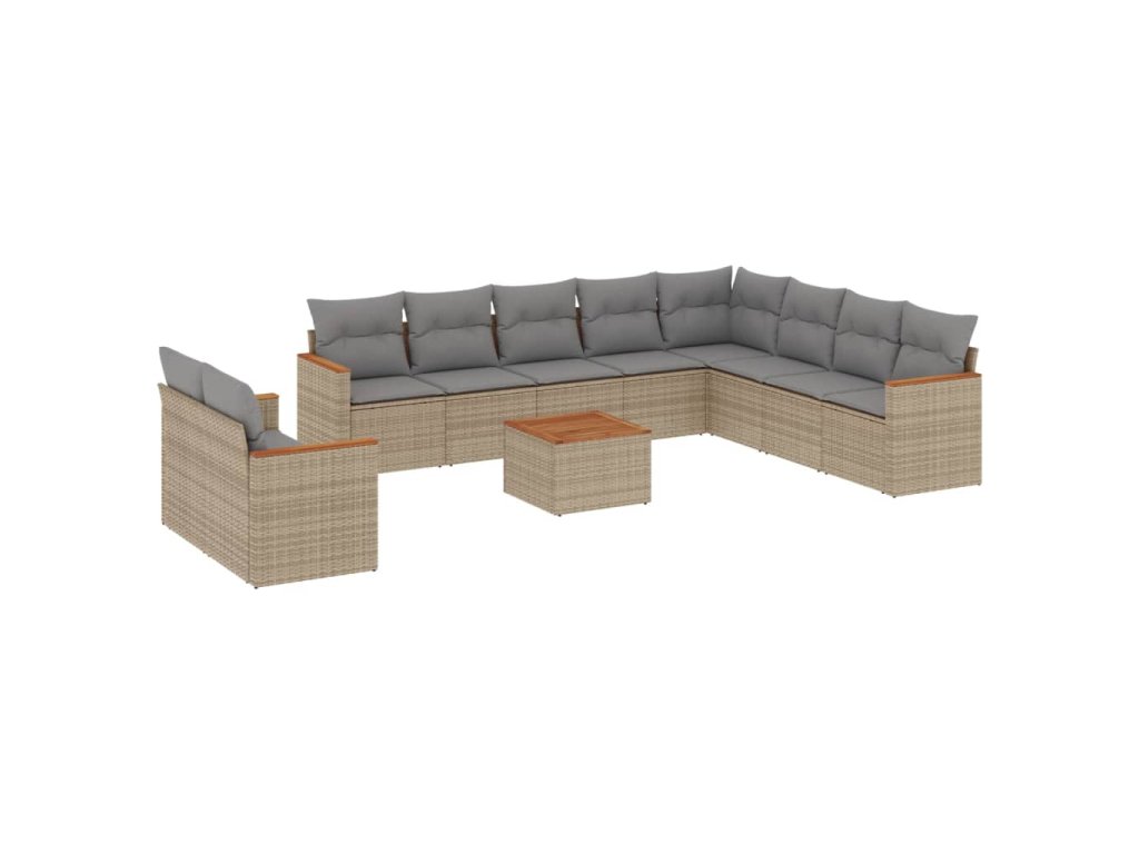 11dílný zahradní sedací souprava s poduškami béžový polyratan 3258524