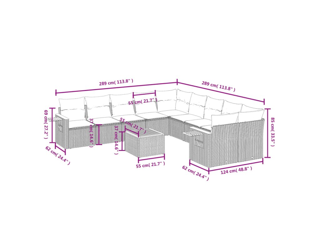 11dílný zahradní sedací souprava s poduškami béžový polyratan 3259602