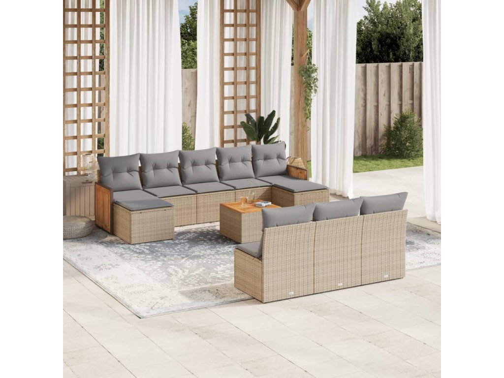 11dílný zahradní sedací souprava s poduškami béžový polyratan 3260477