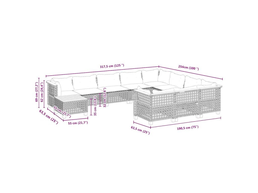 11dílný zahradní sedací souprava s poduškami béžový polyratan 3262060