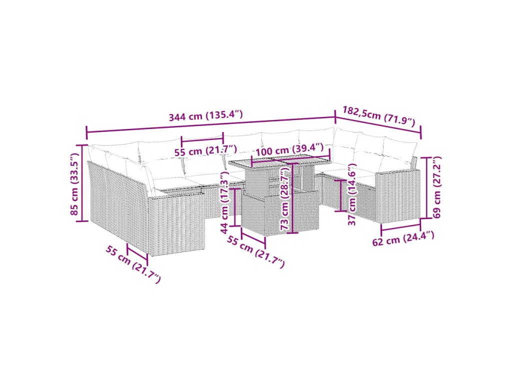 11dílný zahradní sedací souprava s poduškami béžový polyratan 3271485