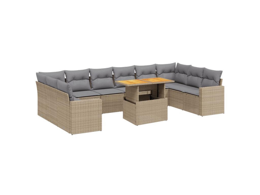 11dílný zahradní sedací souprava s poduškami béžový polyratan 3271486