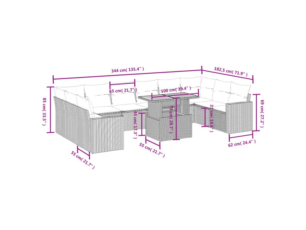 Tato zahradní sedací souprava je dokonalým doplňkem vaší zahrady, terasy nebo dvorku a poskytne vám pohodlné a příjemné místo, kde si můžete povídat s rodinou a přáteli nebo jen tak odpočívat a užívat si pobyt venku.