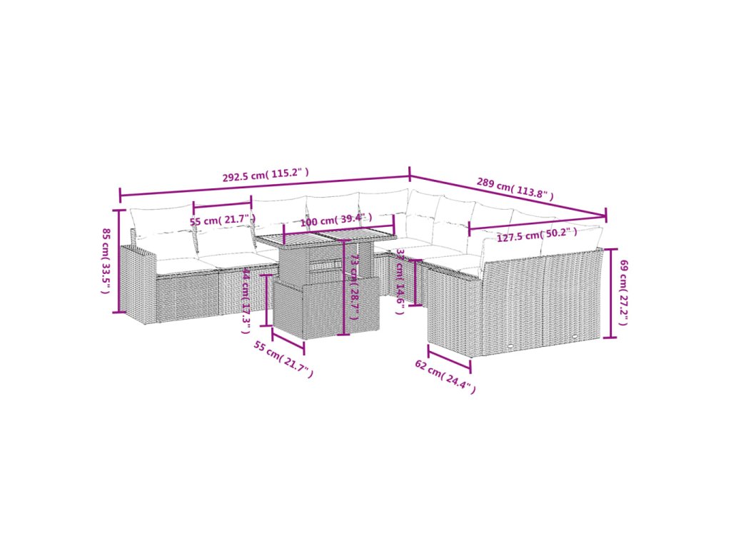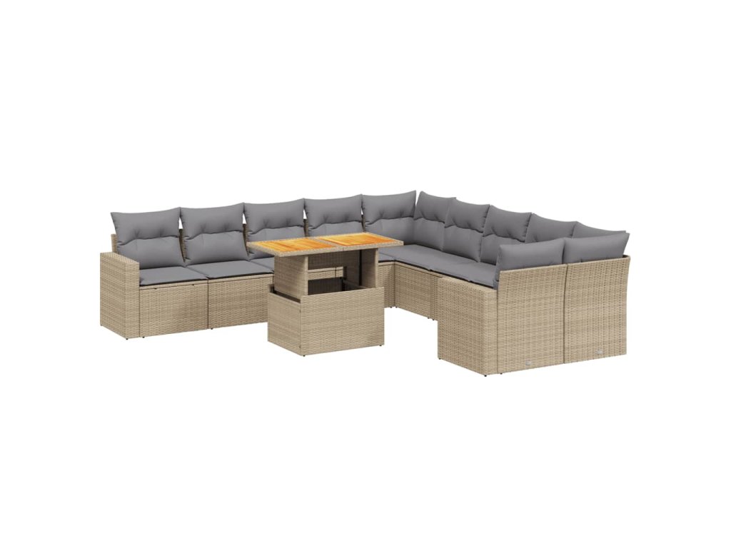 11dílný zahradní sedací souprava s poduškami béžový polyratan 3271507