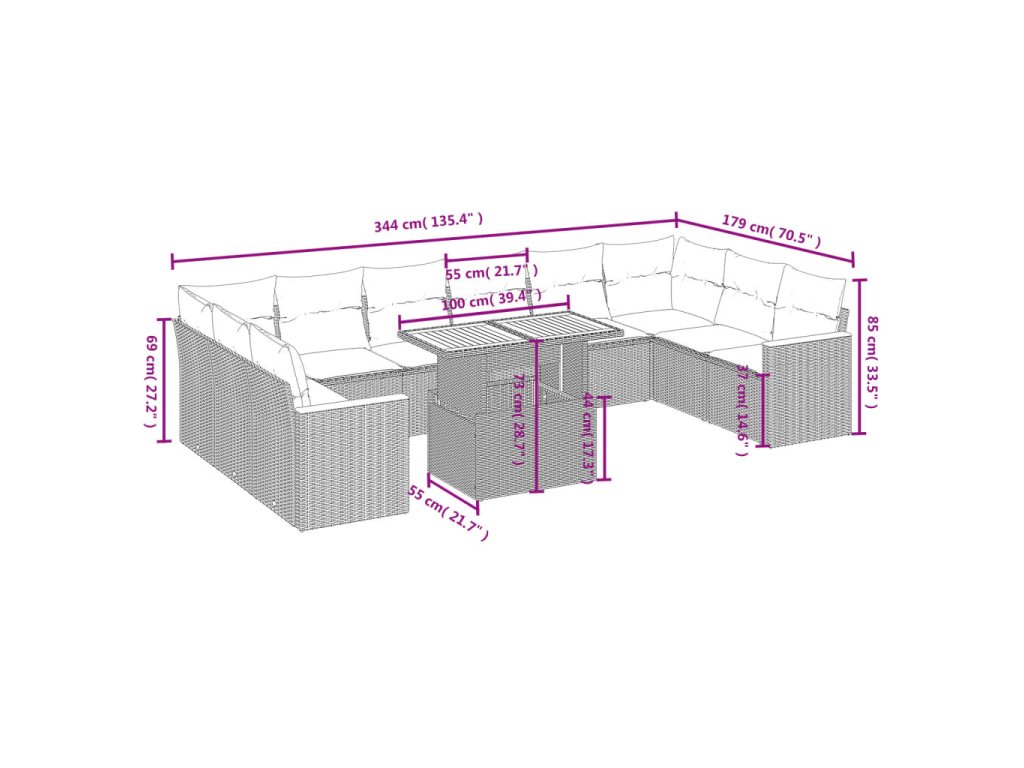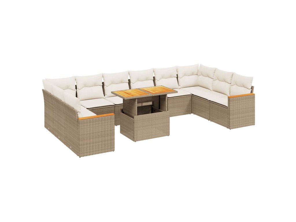 11dílný zahradní sedací souprava s poduškami béžový polyratan 3273249