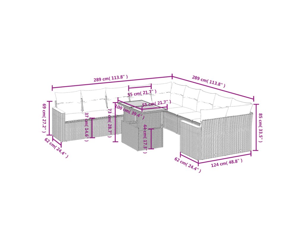 11dílný zahradní sedací souprava s poduškami béžový polyratan 3273263