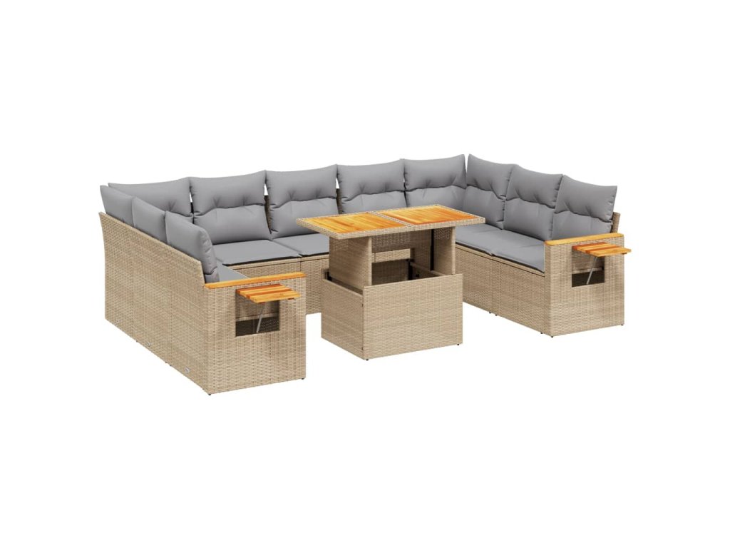 11dílný zahradní sedací souprava s poduškami béžový polyratan 3273691