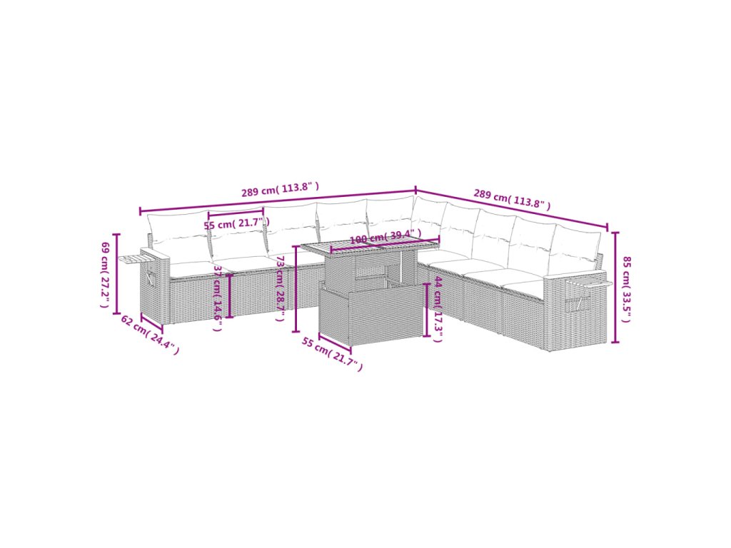 11dílný zahradní sedací souprava s poduškami béžový polyratan 3273705