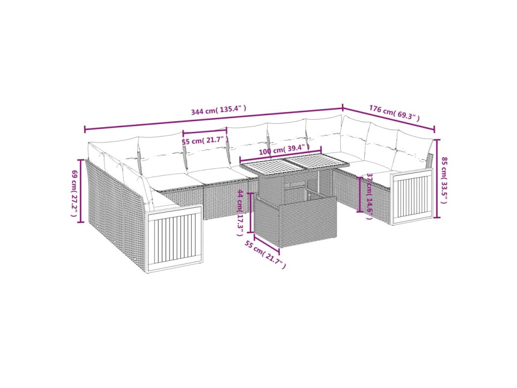 11dílný zahradní sedací souprava s poduškami béžový polyratan 3274132