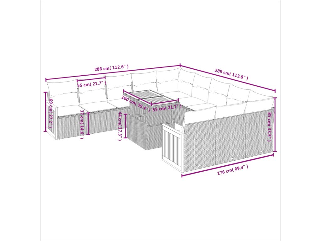 11dílný zahradní sedací souprava s poduškami béžový polyratan 3274146