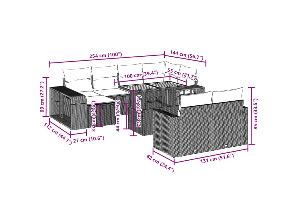 Tato zahradní sedací souprava je dokonalým doplňkem vaší zahrady, terasy nebo dvorku a poskytne vám pohodlné a příjemné místo, kde si můžete povídat s rodinou a přáteli nebo jen tak odpočívat a užívat si pobyt venku.