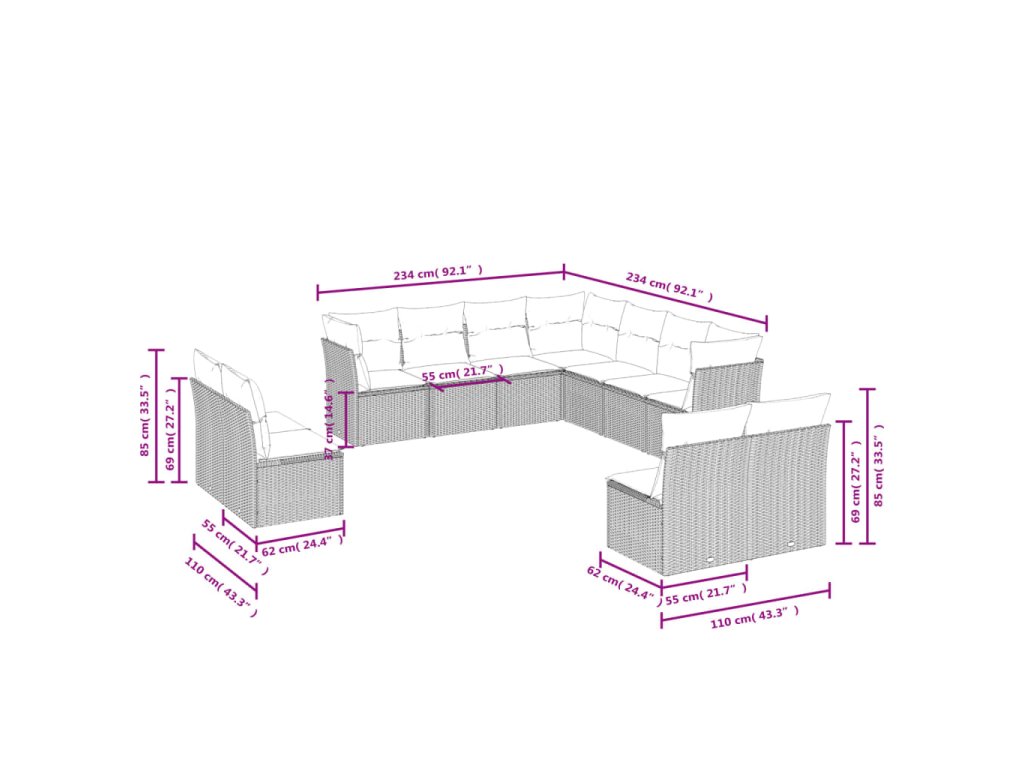 11dílný zahradní sedací souprava s poduškami hnědý polyratan 3249662