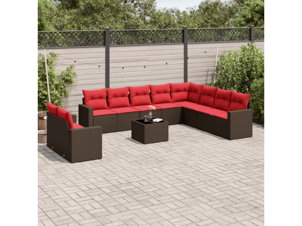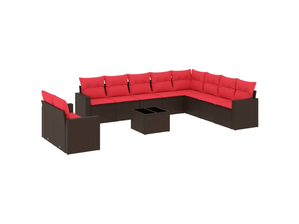 11dílný zahradní sedací souprava s poduškami hnědý polyratan 3251521