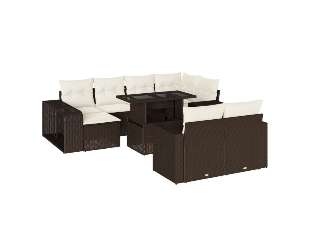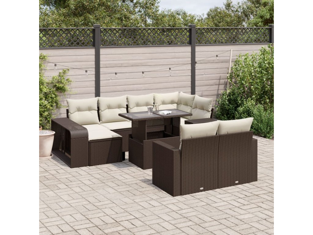 11dílný zahradní sedací souprava s poduškami hnědý polyratan 3274586