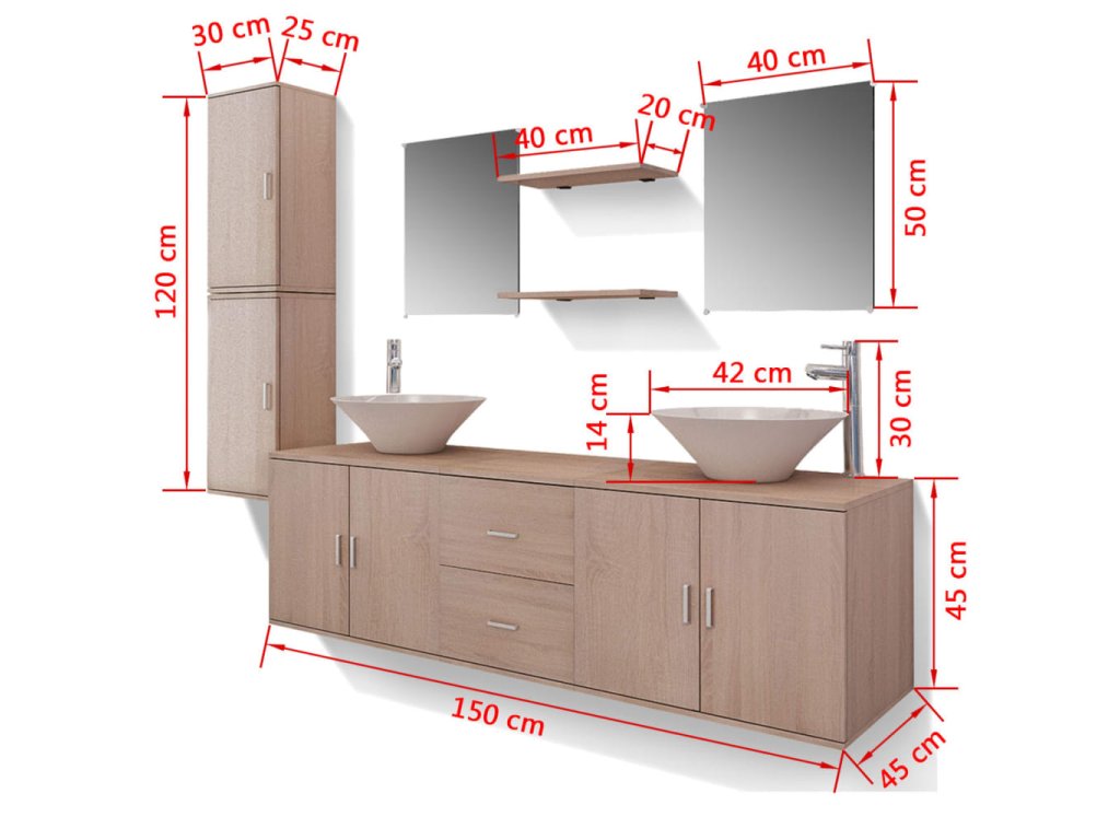 - Rozměry skříňky pod umyvadlo: 150 x 45 x 45 cm (D x Š x V)