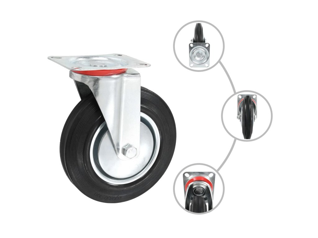 Kolečka jsou vyrobena z gumy, která je známá pro svou schopnost pohlcovat nárazy a vibrace. Ať už tedy kolečka namontujete na cokoliv, budete to moci přesouvat hladce a v tichosti. Jejich hladký povrch navíc ochrání vaši podlahu před poškrábáním. Zinkem potažený ocelový rám je odolný proti rzi, dodává kolečkům na odolnosti a prodlužuje jejich životnost. Každé kolečko má maximální nosnost až 180 kg.