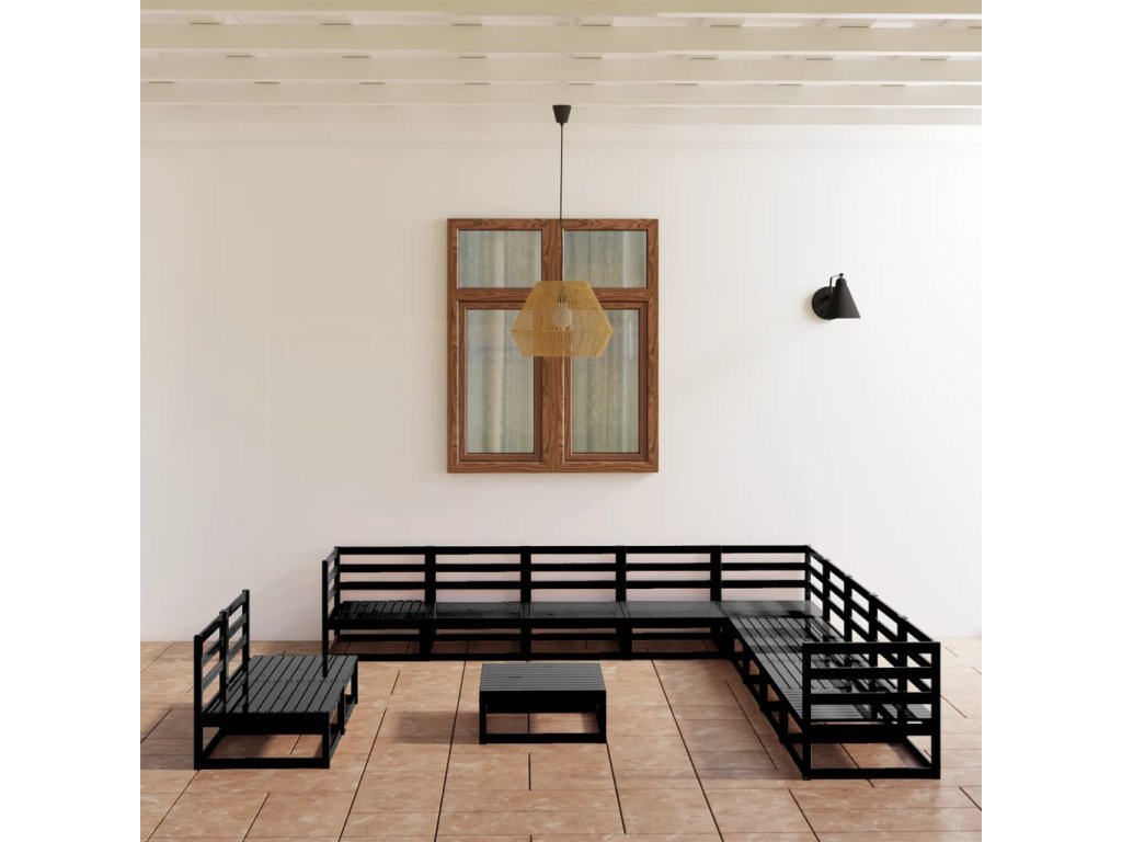 12dílná zahradní sedací souprava černá masivní borovice 3075883