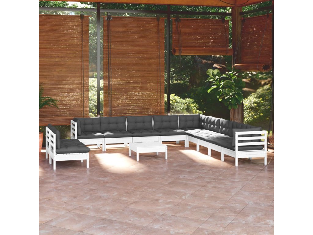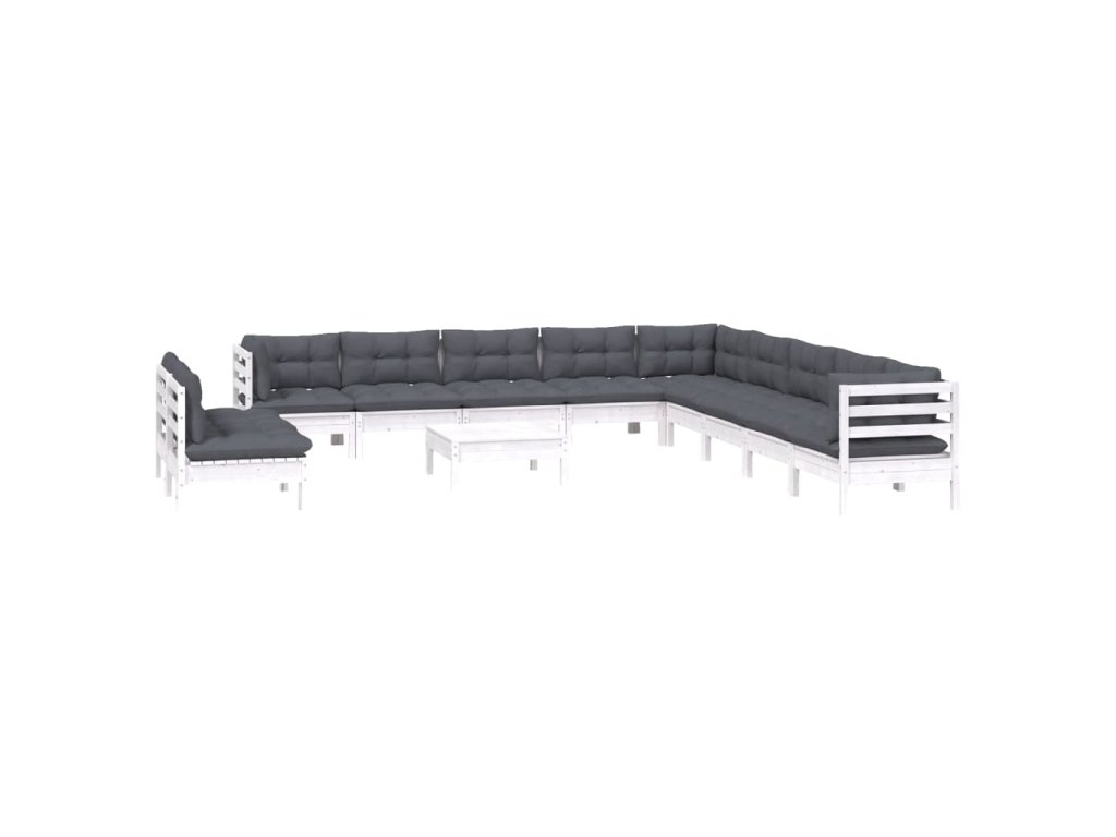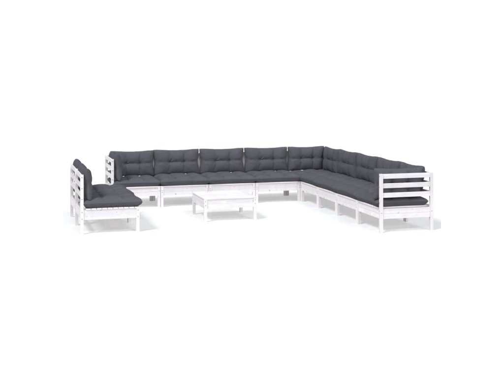 12dílná zahradní sedací souprava podušky bílá masivní borovice 3096858