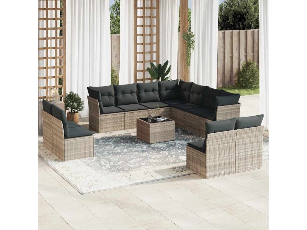 12dílná zahradní sedací souprava podušky světle šedá polyratan 3217832