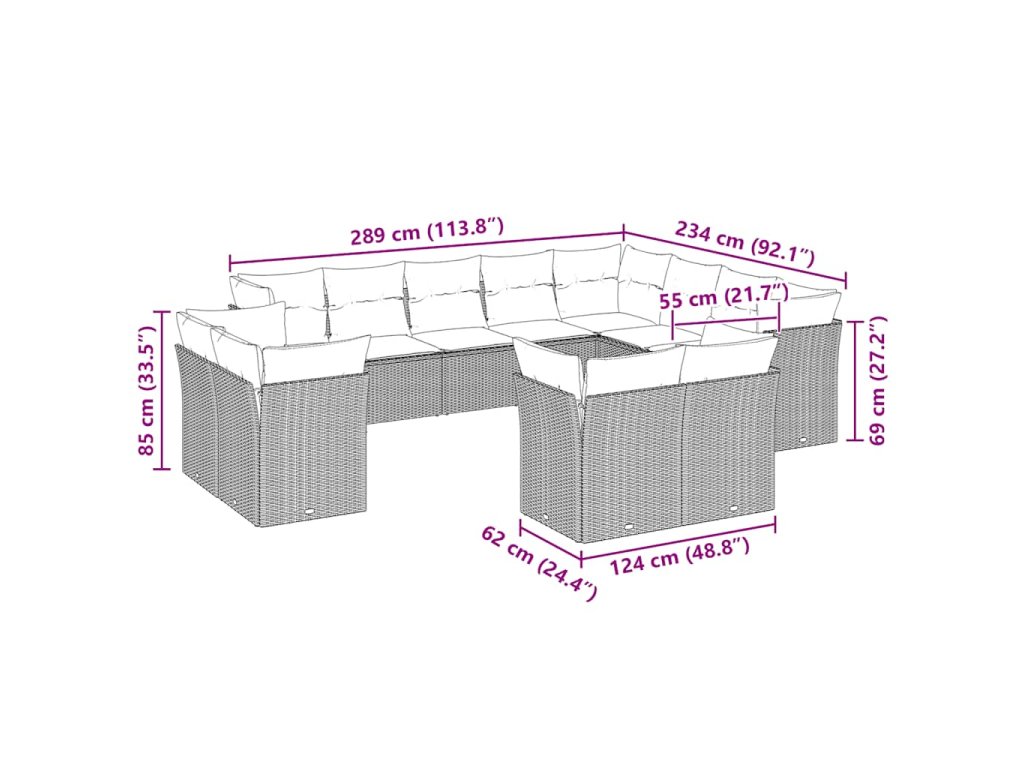 12dílná zahradní sedací souprava podušky světle šedá polyratan 3218532