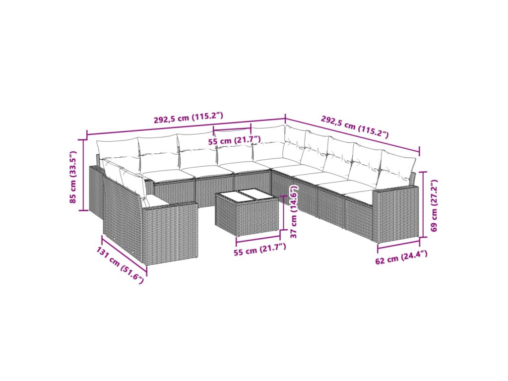 Tato zahradní sedací souprava je dokonalým doplňkem vaší zahrady, terasy nebo dvorku a poskytne vám pohodlné a příjemné místo, kde si můžete povídat s rodinou a přáteli nebo jen tak odpočívat a užívat si pobyt venku.