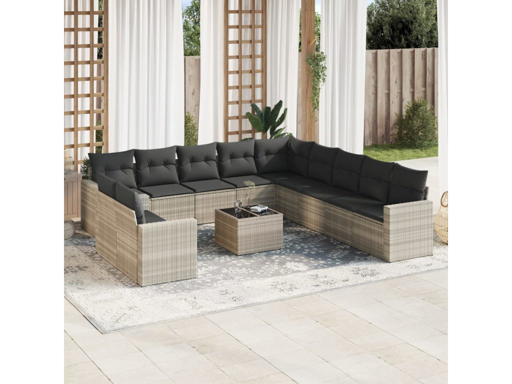 12dílná zahradní sedací souprava podušky světle šedá polyratan 3251539