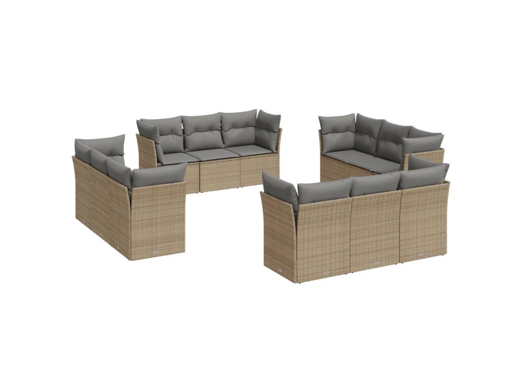 12dílná zahradní sedací souprava s poduškami béžová polyratan 3217329