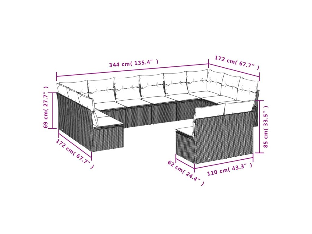 12dílná zahradní sedací souprava s poduškami béžová polyratan 3218368