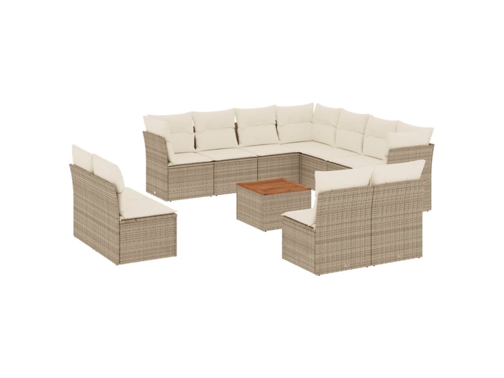 12dílná zahradní sedací souprava s poduškami béžová polyratan 3223706