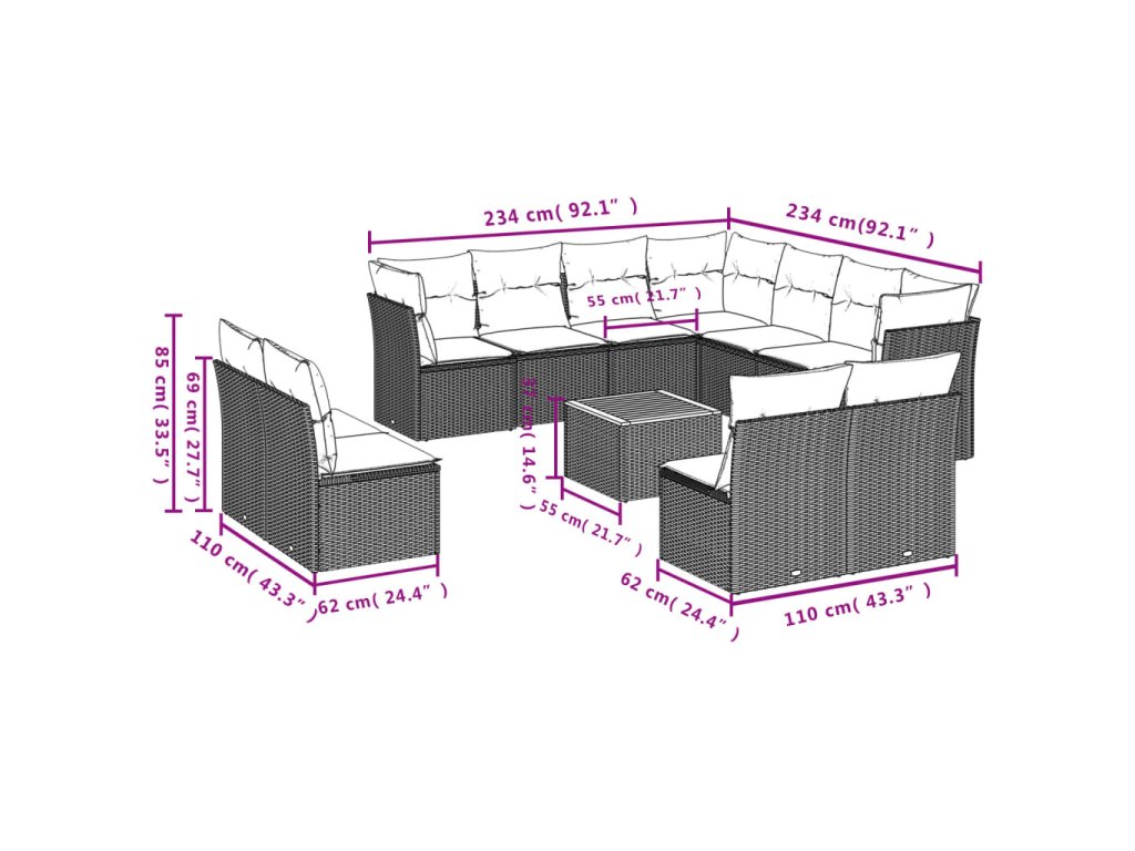 Tato zahradní sedací souprava je dokonalým doplňkem vaší zahrady, terasy nebo dvorku a poskytne vám pohodlné a příjemné místo, kde si můžete povídat s rodinou a přáteli nebo jen tak odpočívat a užívat si pobyt venku.