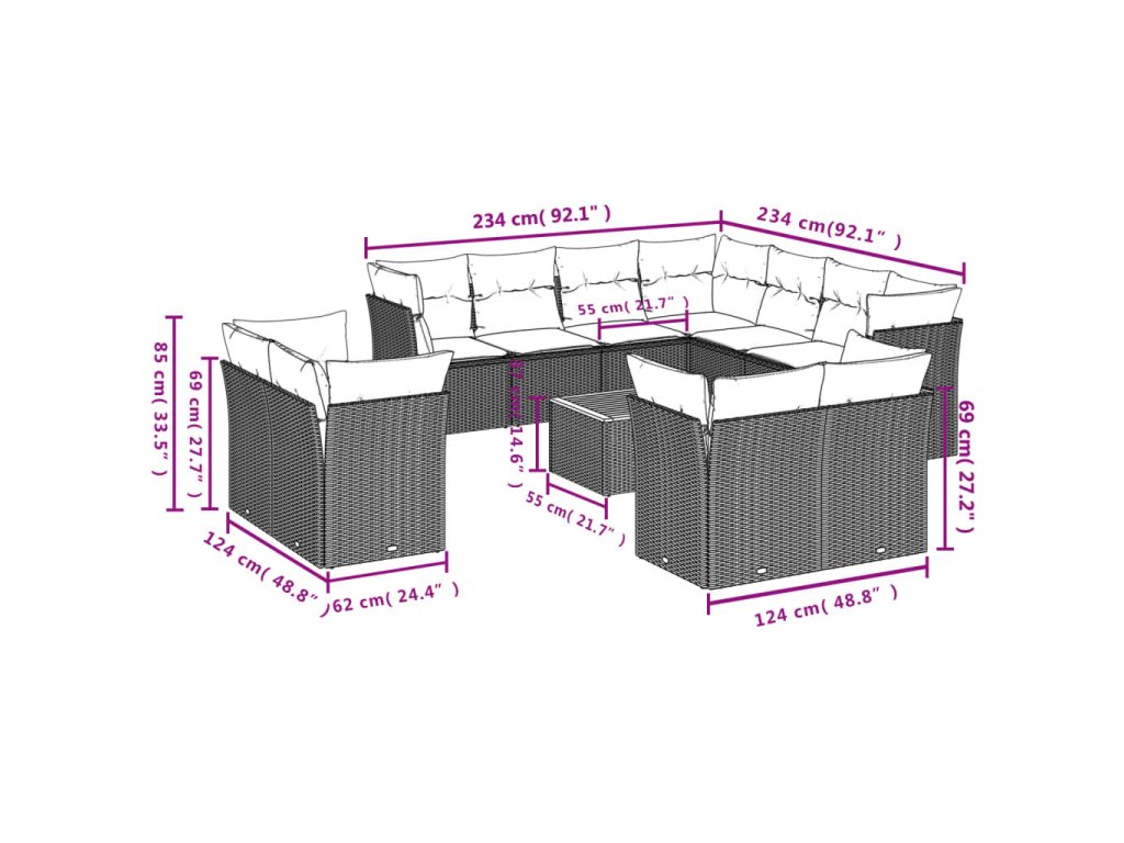 12dílná zahradní sedací souprava s poduškami béžová polyratan 3223945