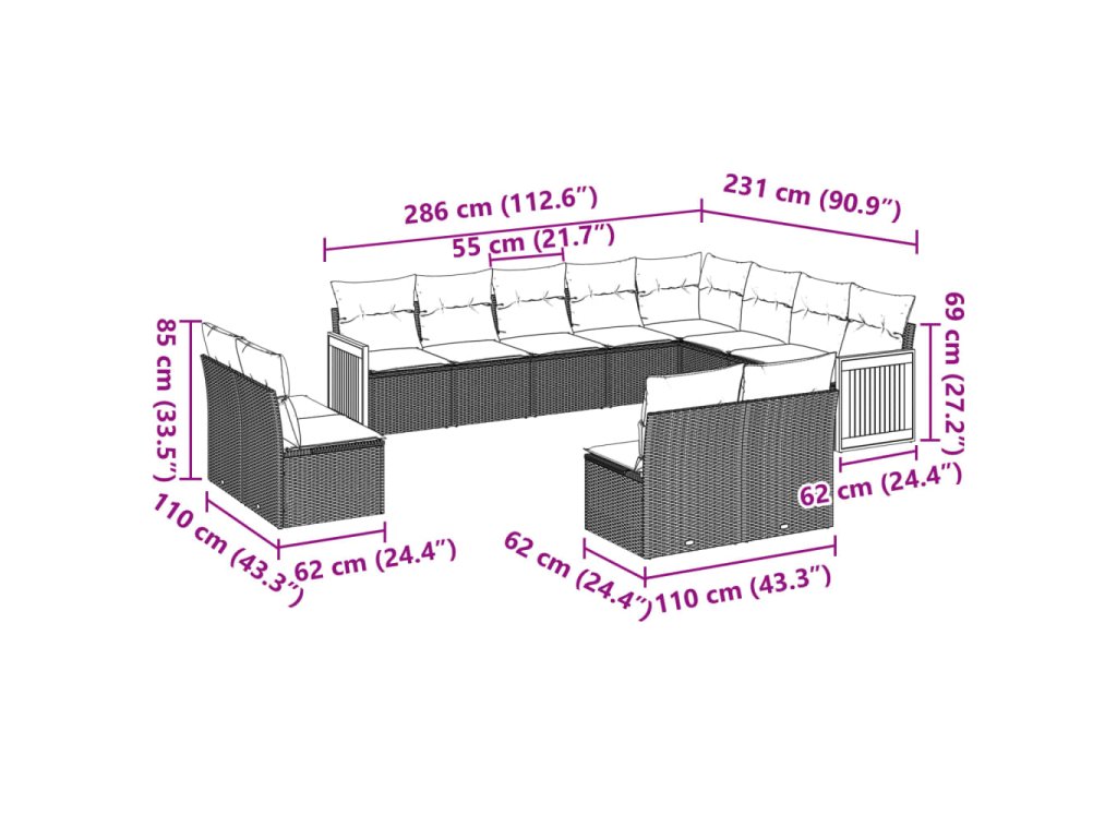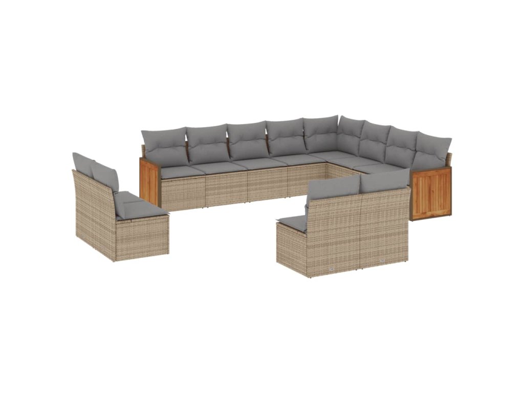 12dílná zahradní sedací souprava s poduškami béžová polyratan 3228152