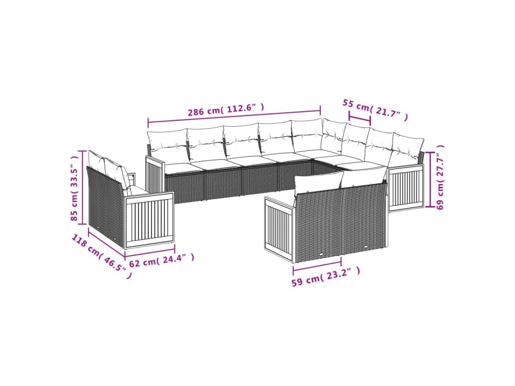 12dílná zahradní sedací souprava s poduškami béžová polyratan 3228193